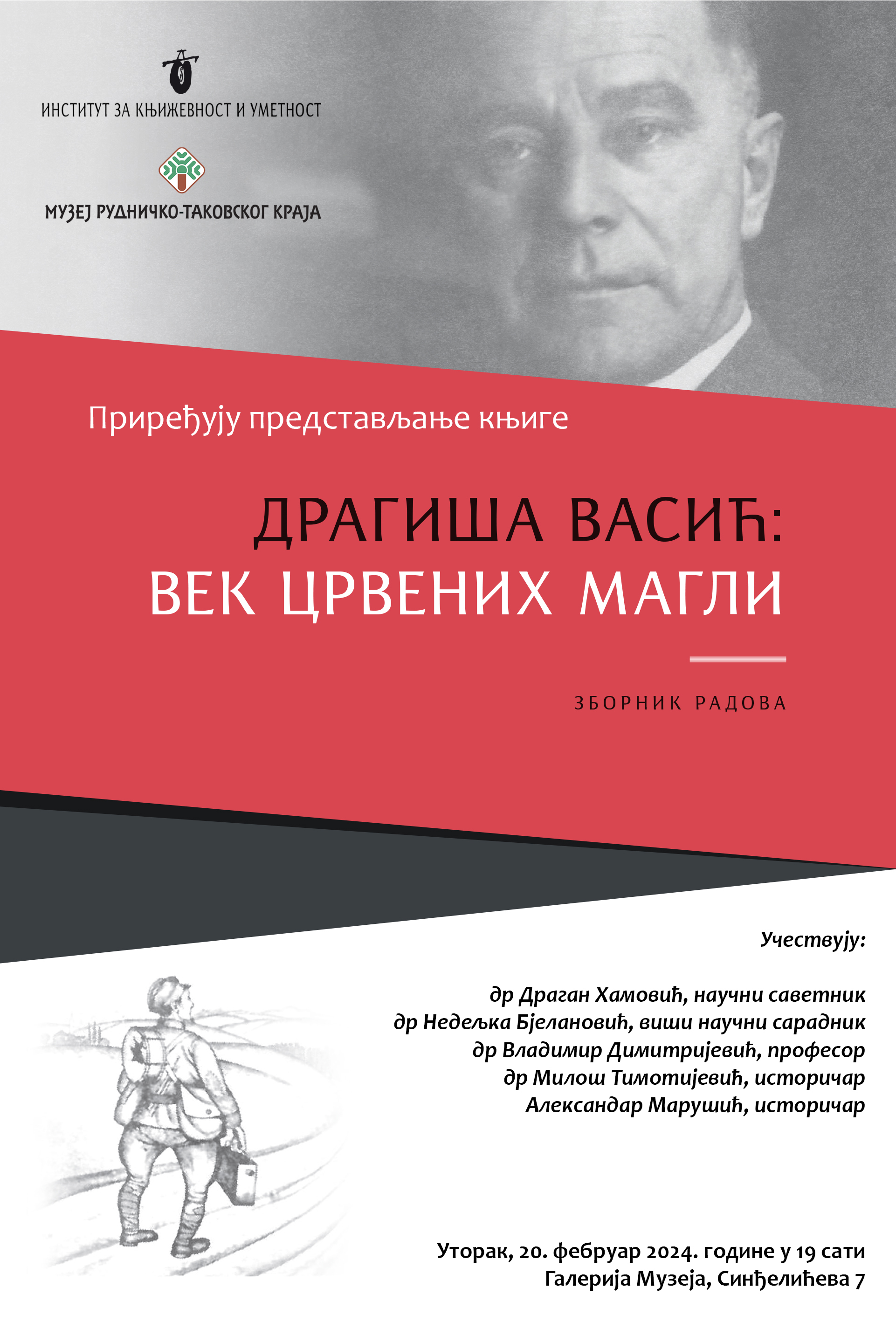 Промоција зборника радова Драгиша Васић: век црвених магли, у издању Института за књижевност и уметност и Музеја рудничко-таковског краја, одржаће се у Горњем Милановцу у уторак, 20. фебруара са почетком у 19.00 часова, у галерији Музеја, Синђелићева 7.